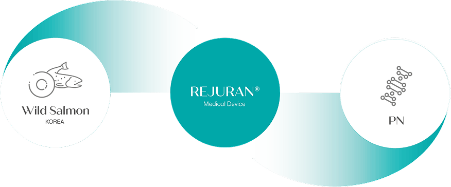 REJURAN® PN-based injectable gels are manufactured using PharmaResearch’s patented DNA Optimizing Technology (DOT™) to obtain purified polynucleotide (PN) and polydeoxyribonucleotide (PDRN) materials.